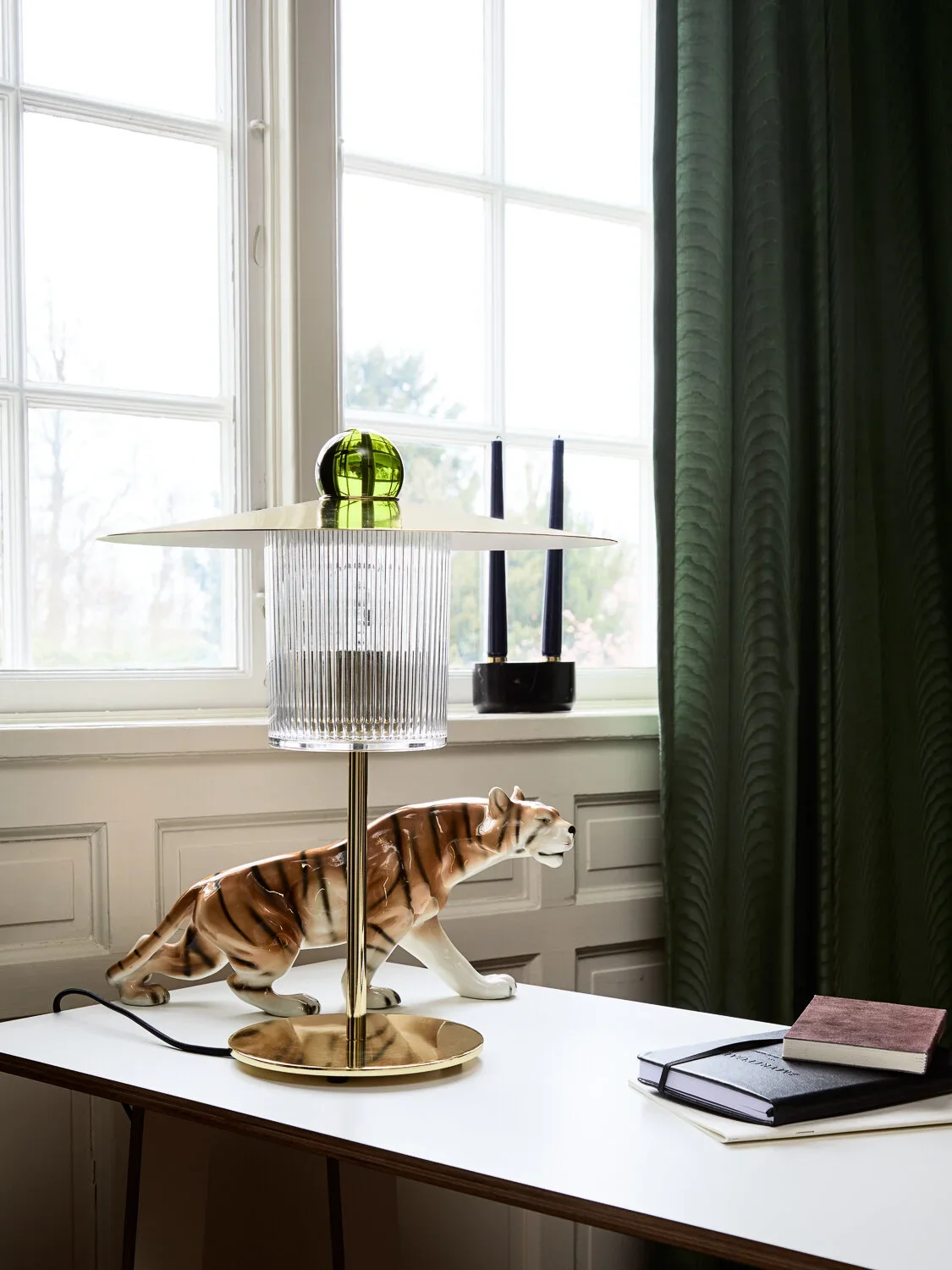 The Piece: The Ballroom Molecule Chandelier in Army Green glass. It mimics the dappled sunlight of a forest canopy, bringing the "Island of Flowers" directly into your living room.