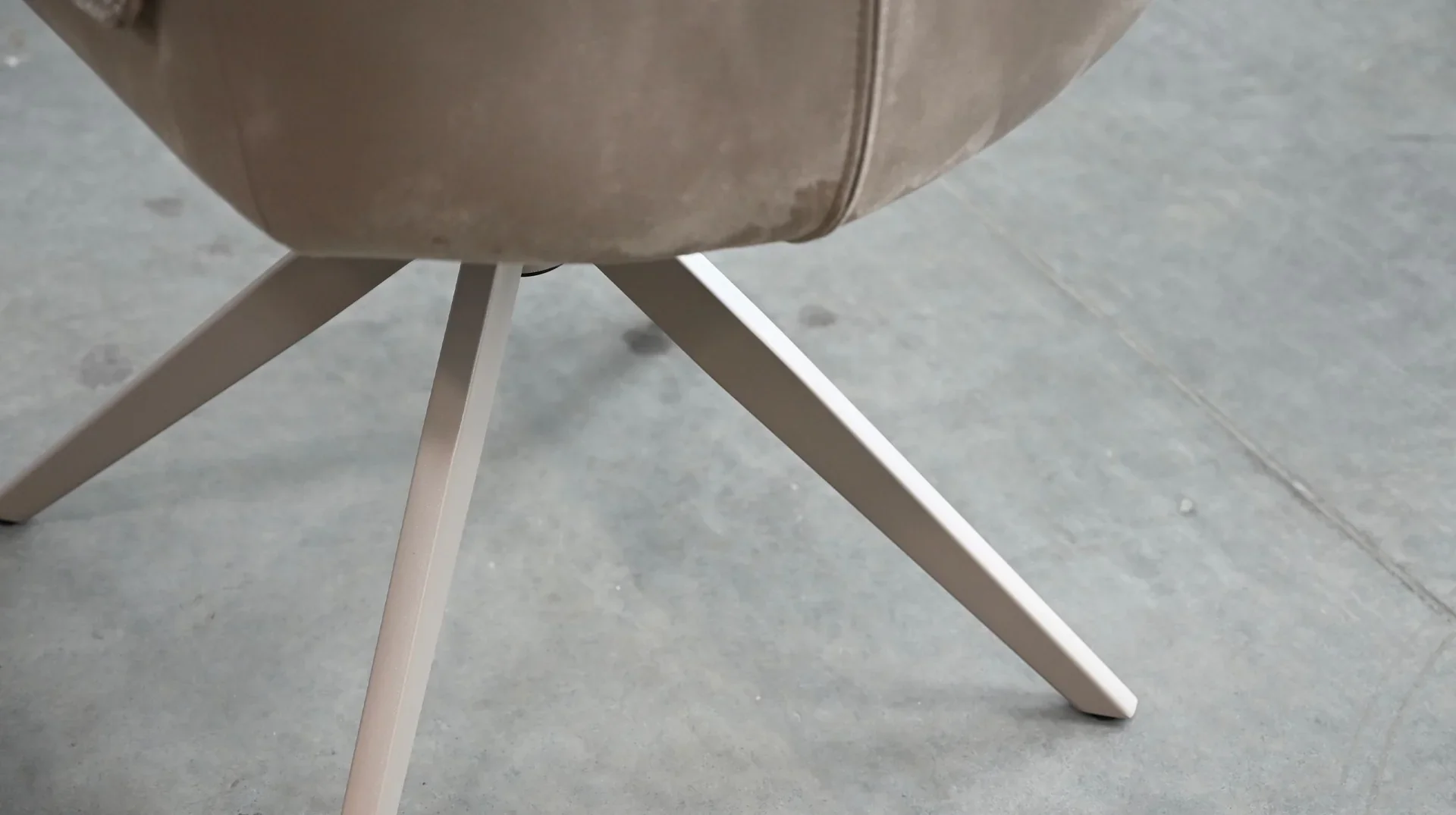 The Espara Dining Chair is designed for both style and functionality, featuring a 360-degree swivel mechanism for added convenience. its unique two-toned design pairs an avena oat alcantara outer with a soft alpaca chenille seat, while the matte powder-coated taupe base beautifully complements the overall aesthetic, making it a chic addition to any dining space.