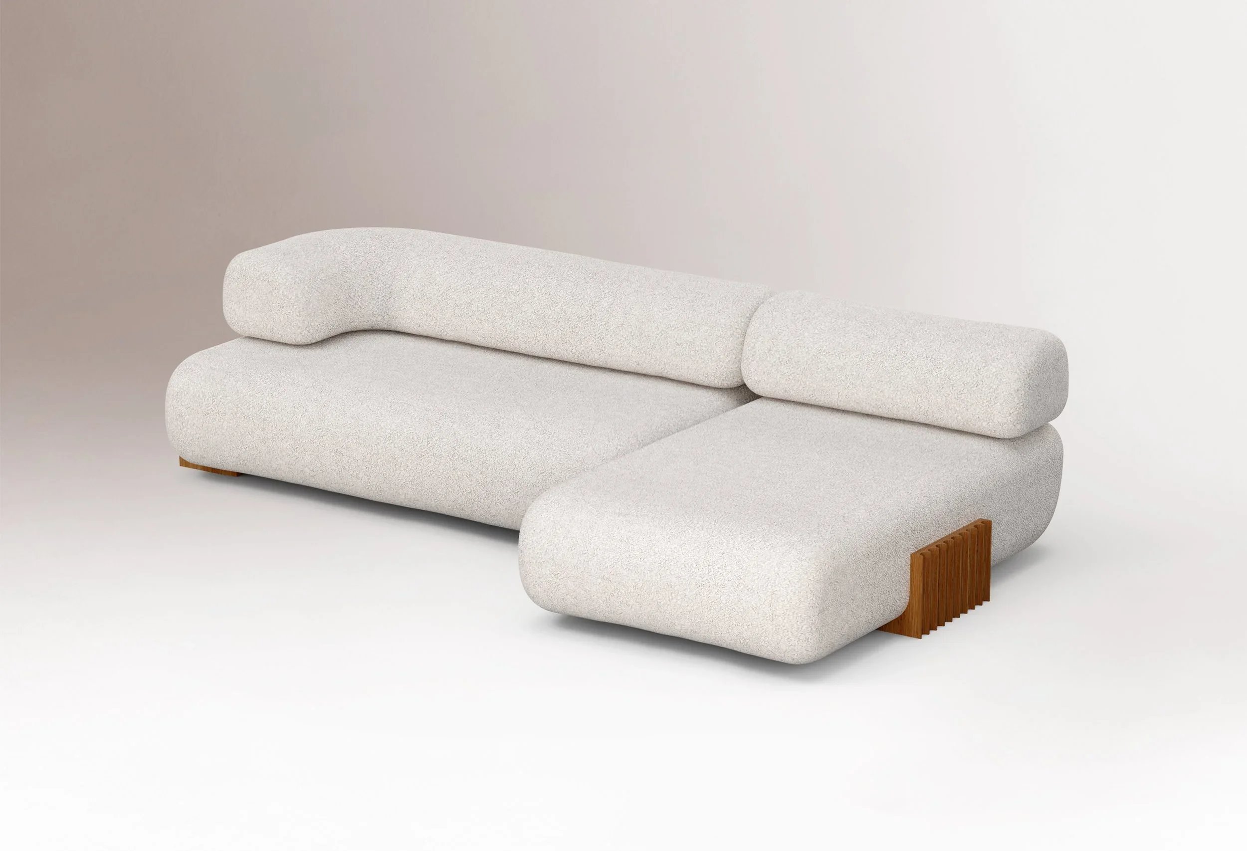 Craftsmanship Handcrafted to order in our signature Alabaster or Licorice Bouclé and premium performance fabrics. The design is elevated by distinctive fluted solid wood legs, adding a warm, biophilic touch to the modernist form.